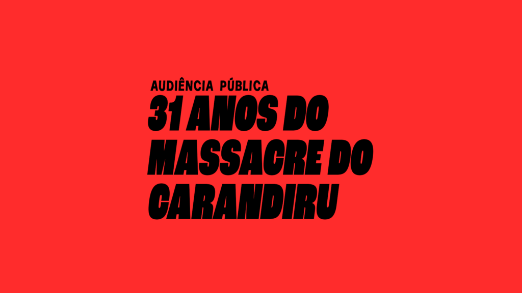 Acontece no dia 05 de outubro, a partir das 18h, no Plenário Tiradentes, da Assembléia Legislativa do Estado de São Paulo, a audiência pública “31 Anos do Massacre do Carandiru”. O ato parlamentar tem o mote “Memória Carandiru Resiste – Pelo Direito, Pela Memória e Verdade na Casa De Detenção de São Paulo”, ou seja, busca manter vivo na memória uma das principais chacinas em sistema prisional já ocorridas no país.